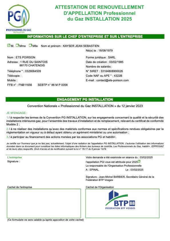 Qualifications QUALIBAT - PG : Profession du Gaz